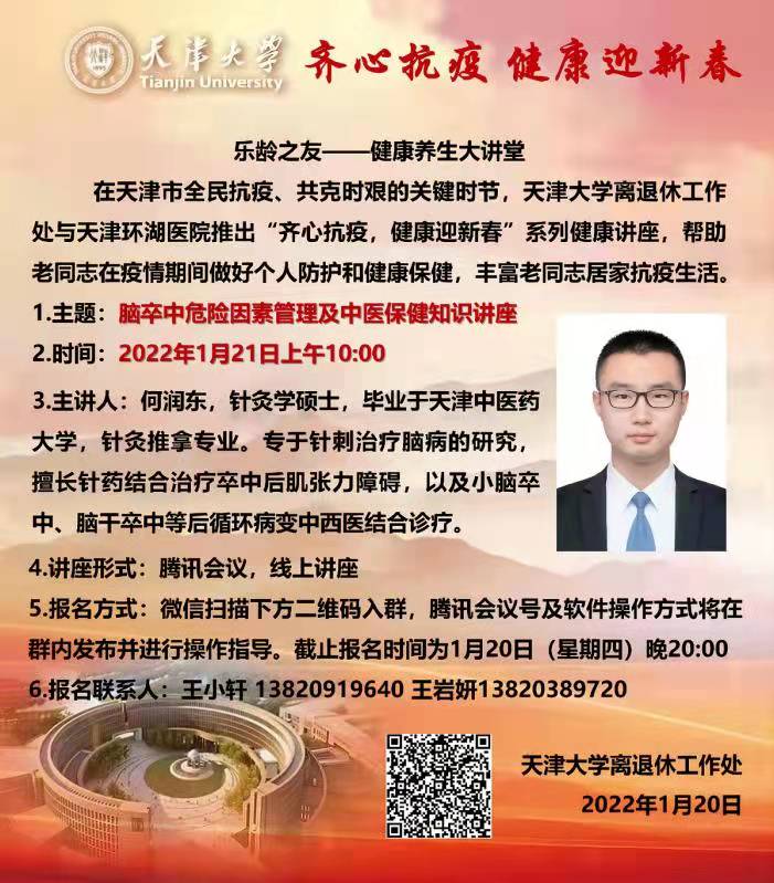 “齐心抗疫 美味迎新春”乐龄之友——健康养生大讲堂:脑卒中危险因素管理及中医保健知识讲座
